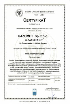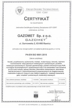 O jakości naszych usług świadczy fakt, że Gazomet posiada i stosuje system zapewnienia jakości ISO 9001 w zakresie swojej działalności oraz specjalistyczne certyfikaty armatury zaporowej.